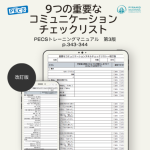 新しい環境にて現在学習者が自発的に要求しているか、援助の要求をしている?先生に「待って」と言われて待つことができる?視覚的な支持に従える?など、学習者の現在のコミュニケーション状況を評価してみましょう。9つの重要なコミュニケーションスキルのチェックリスト(PECSマニュアル第2版 P.343 & 第3版 P.343-344)を使って現在の学習者の状況を評価しすると新年度の目標を立てる際に役立ちます。