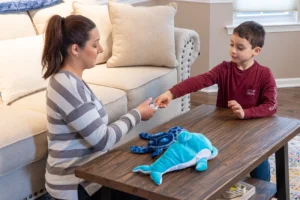 保護者の方に補助・拡大コミュニケーション様式(手段)の導入を勧める話をすることは決して簡単なことではありません。中には、発語を諦めたということ?と感じる保護者の方もいらっしゃるかもしれないですが、決してそうではありません。良いセラピストは、常に発語を目指し続けながらも、必ず、子どもがすぐに獲得できる方法で意思表現できるように教えます。そうすることで、自分のニーズや要求を伝えられない子どもが抱える大きな不満/ストレスに即座に対処し、それらを和らげることができるからです。この基本的な人権が満たされることで、子どもは必要な手厚い支援や指導にもより前向きに取り組めるようにもなるのです。