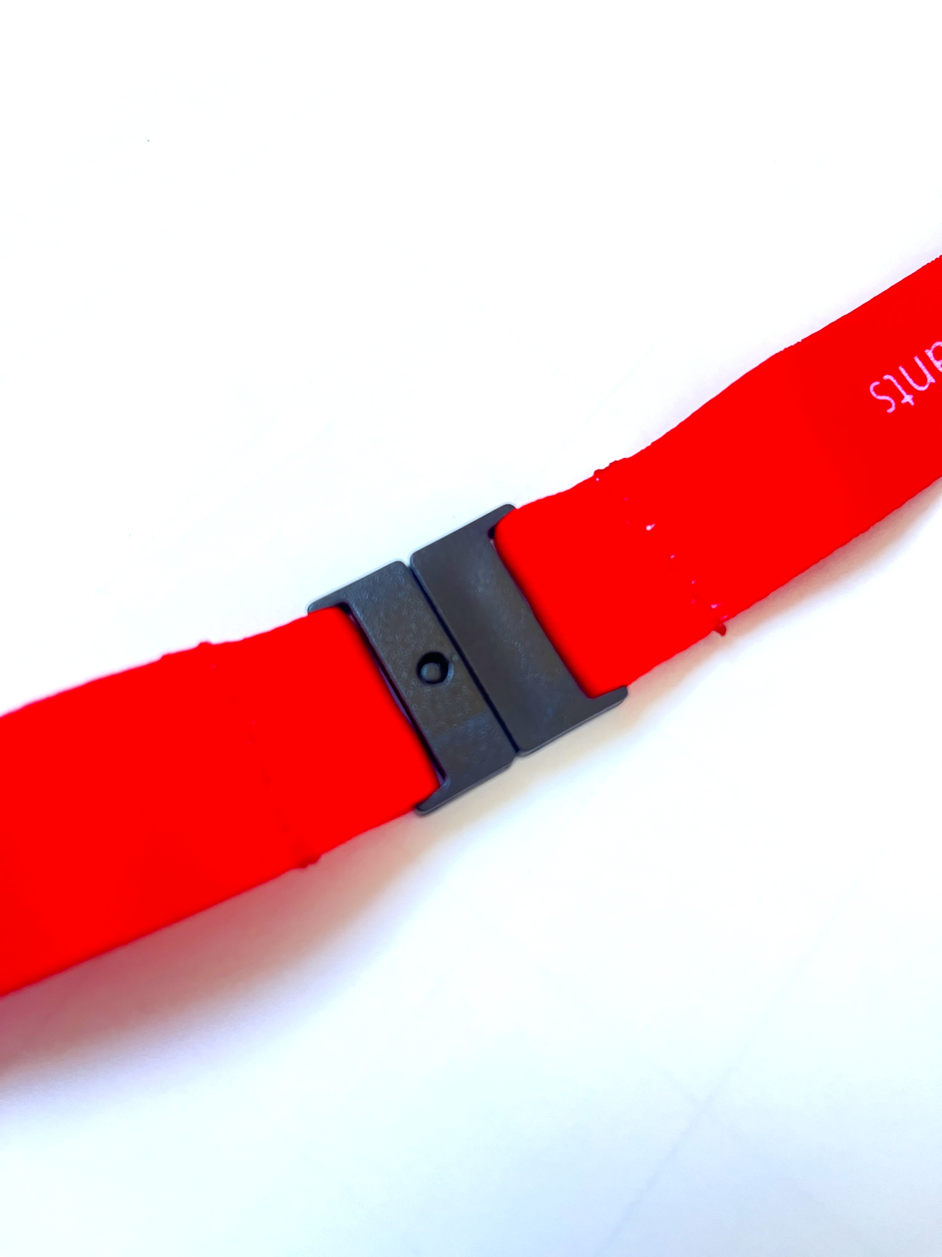 ストラップには6色あり、赤・緑・青・オレンジ・ピンク・水色から選んでいただけます。